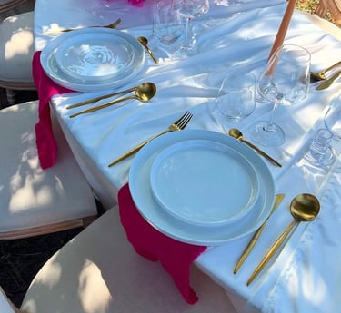 OC-Location propose deux forfaits pensés pour s’adapter aux besoins et aux envies de chaque événement. Le forfait minimaliste inclut l’essentiel pour une table fonctionnelle et élégante, parfait pour les réceptions sobres ou les petits budgets. Le kit complet, quant à lui, regroupe tous les éléments nécessaires à une mise en table complète et raffinée, incluant la vaisselle, les couverts, les verres, ainsi que les nappes et serviettes assorties. Chaque formule est modulable selon le nombre d’invités et le style de réception, pour vous offrir simplicité, confort et esthétisme.