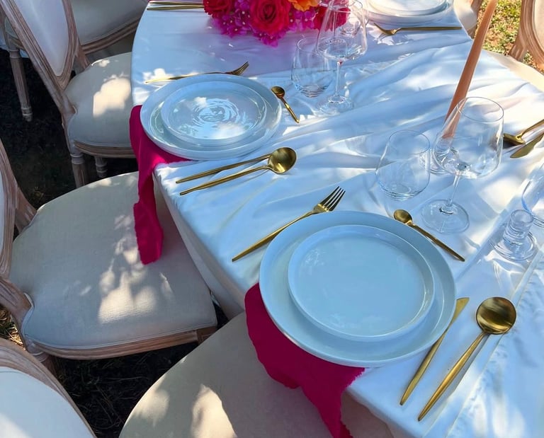 OC-Location propose deux forfaits pensés pour s’adapter aux besoins et aux envies de chaque événement. Le forfait minimaliste inclut l’essentiel pour une table fonctionnelle et élégante, parfait pour les réceptions sobres ou les petits budgets. Le kit complet, quant à lui, regroupe tous les éléments nécessaires à une mise en table complète et raffinée, incluant la vaisselle, les couverts, les verres, ainsi que les nappes et serviettes assorties. Chaque formule est modulable selon le nombre d’invités et le style de réception, pour vous offrir simplicité, confort et esthétisme.